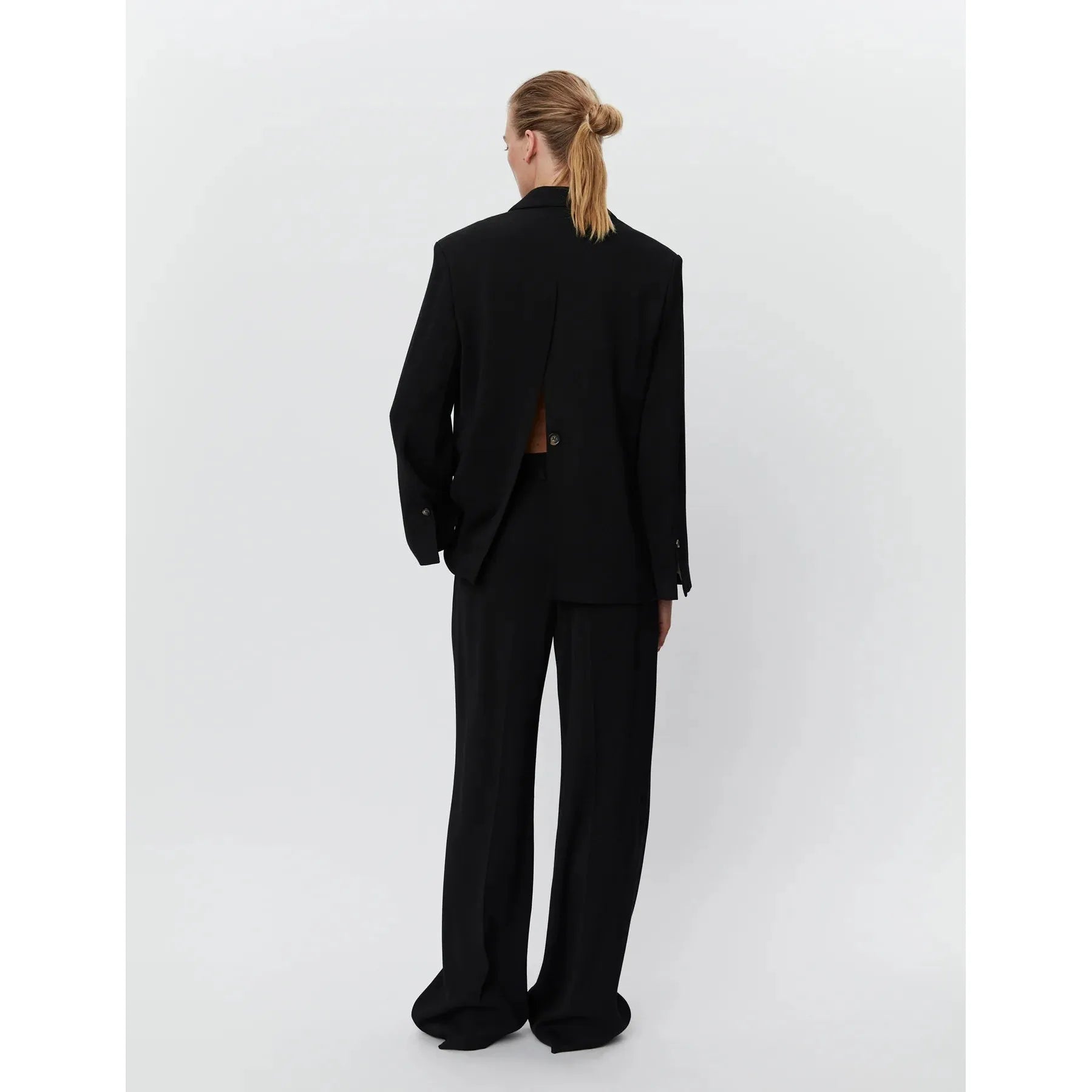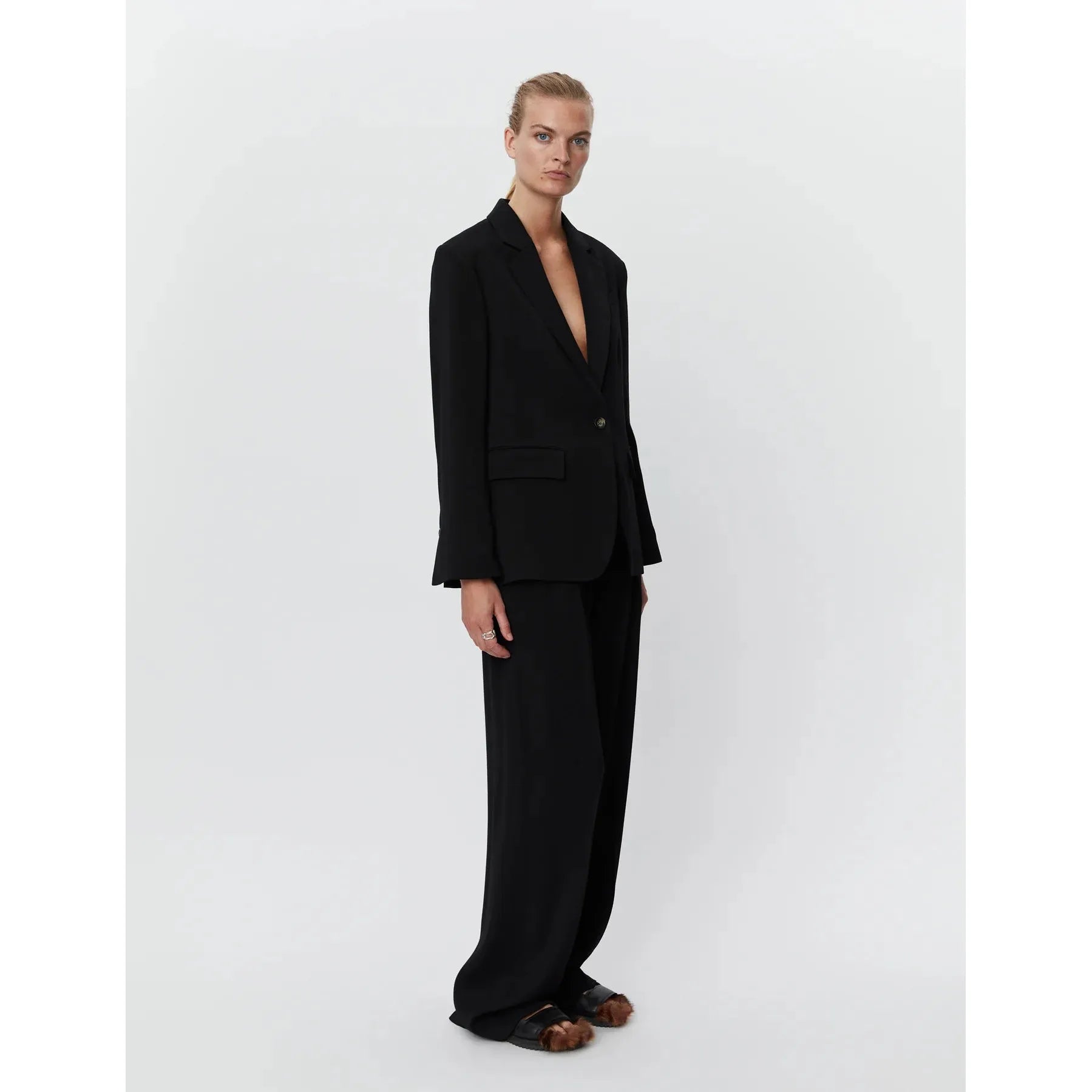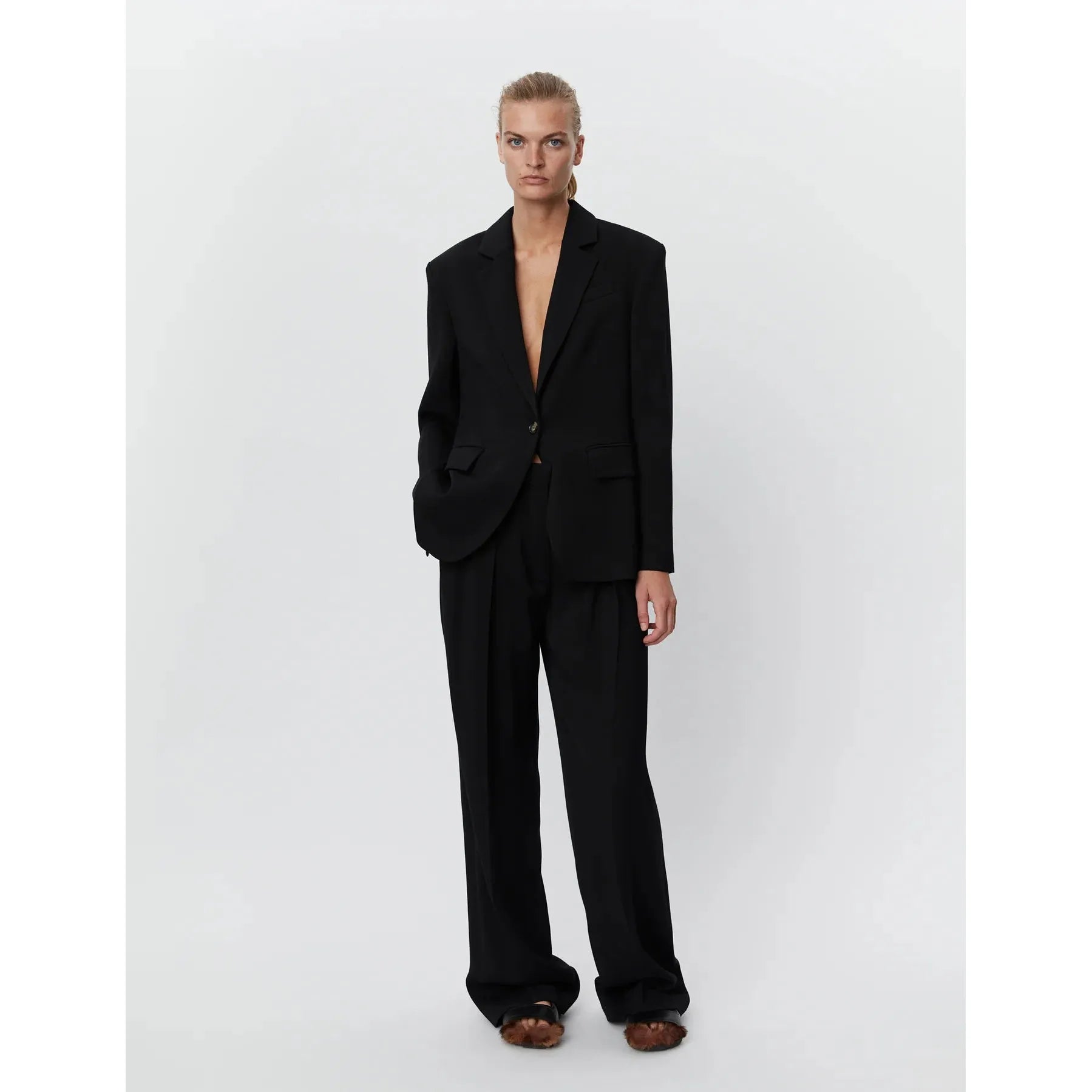 This classic blazer features a single button closure, notched lapel, padded shoulders, and patch pockets at the front. The blazer has a loose fit.