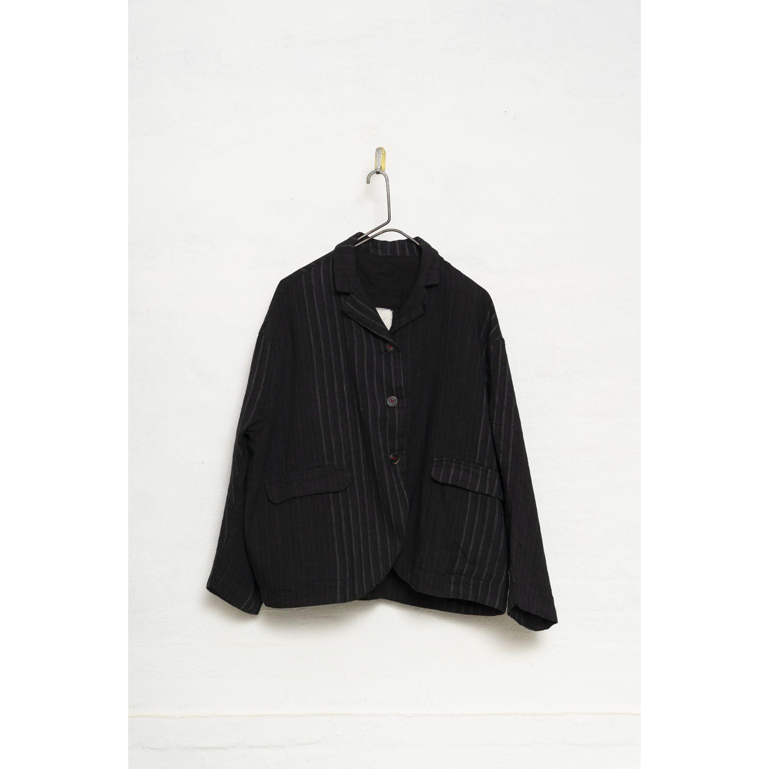 Jacket in Cotton, linen and viscose blend with notched lapels and a curved hem. Features dropped shoulders, two front flap pockets, front button closure sewn with red thread and back slit.