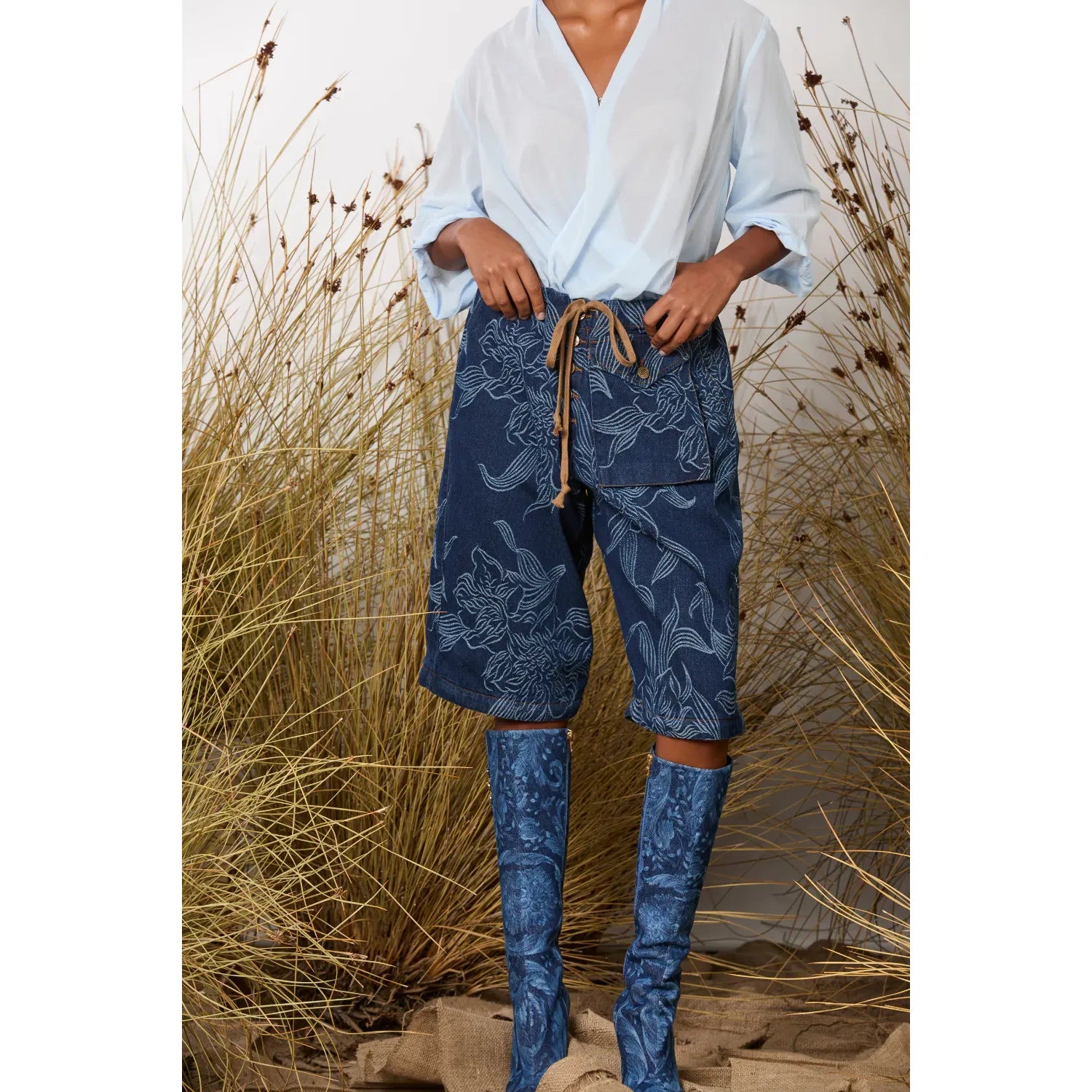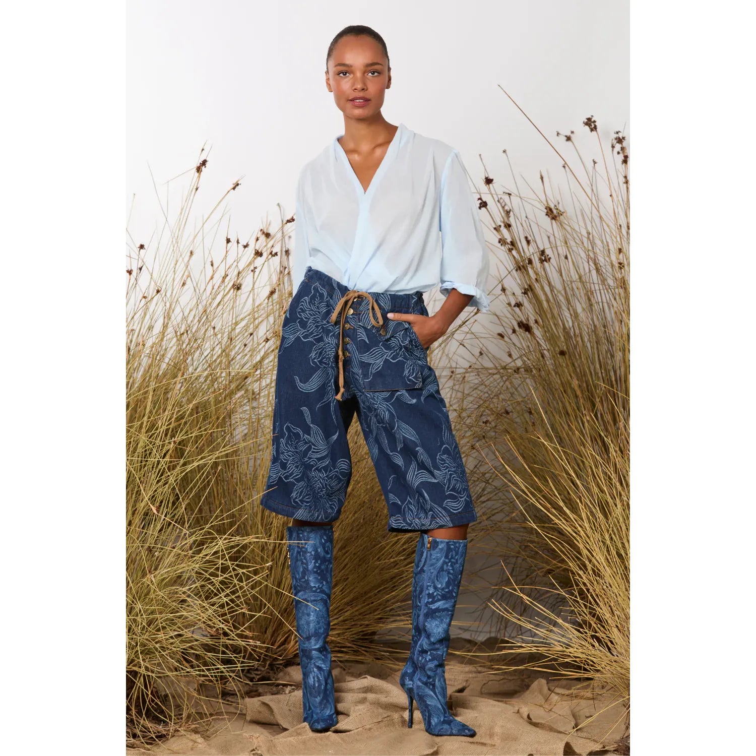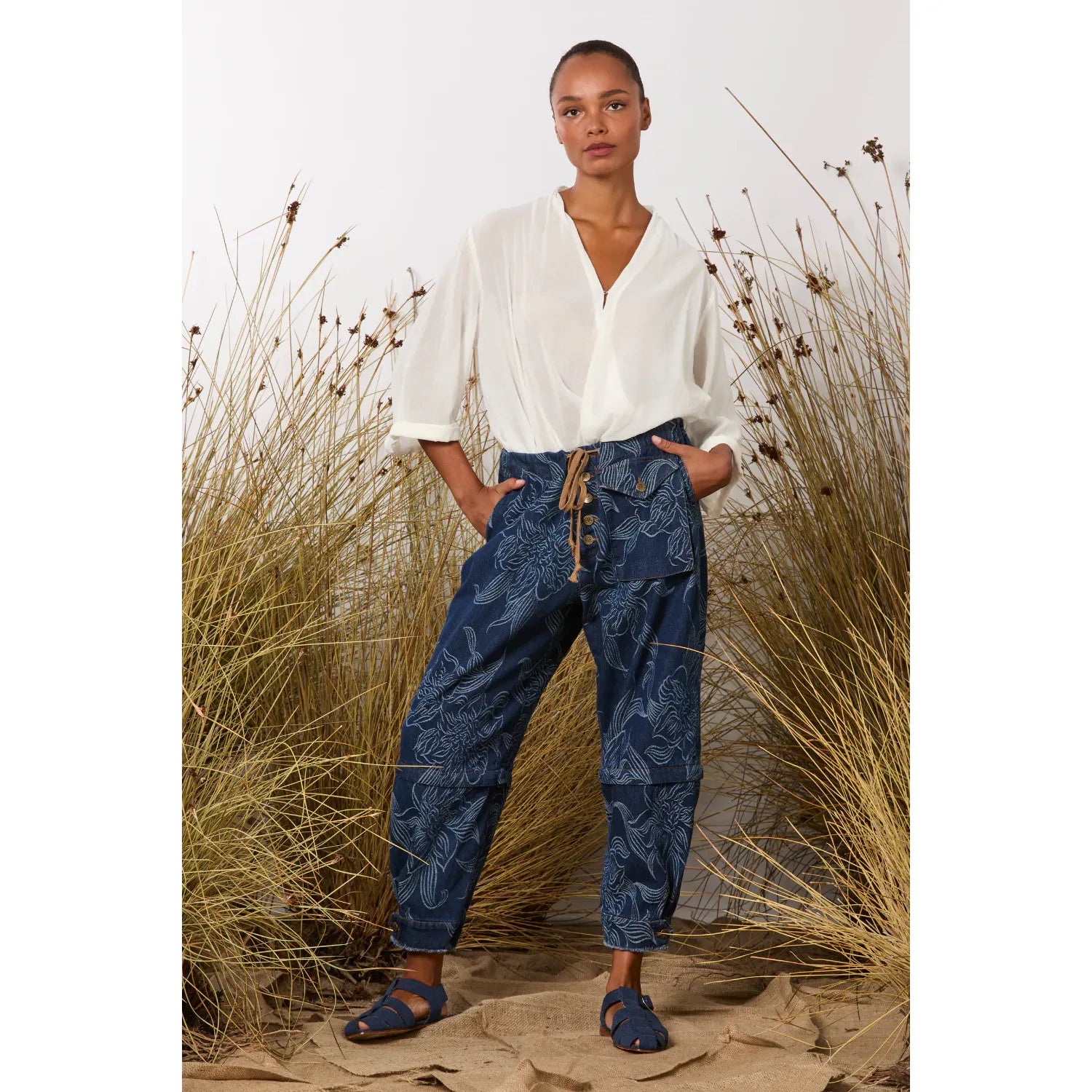 The M.A Dainty Trucker Jean in Orchids combines versatile styling with thoughtful design details. Crafted in rich dark denim and adorned with delicate floral embroidery, this customer-favourite delivers an oversized silhouette that transitions seamlessly between seasons. The drawstring waist ensures comfort, while tapered, adjustable ankles provide a refined finish. Functional in-seam and back pockets keep essentials within reach, and gold button accents add understated elegance. The standout feature: zip-off knees that instantly convert the jeans into shorts, offering year-round versatility. Note: this style runs generous, so sizing down one size is recommended for the best fit.