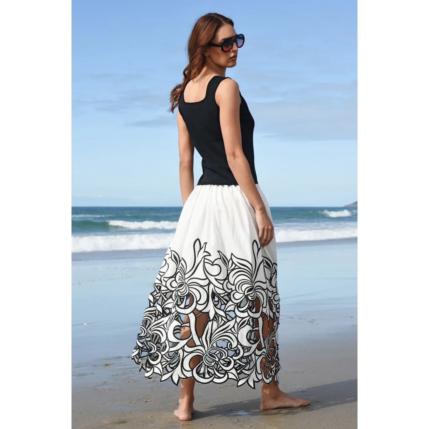Distinguished by its cutwork floral embroidery, the ‘Flirty Girl’ skirt effortlessly combines timeless style with contemporary influence to create a true fashion masterpiece. Crafted from the aptly named ‘Avant-Garden’ fabrication, this skirt features an elastic waist, pockets, and is half lined, showing off the sheer embroidery panel. Elegant in all ways, add a touch of sophistication and poise, no matter the event.