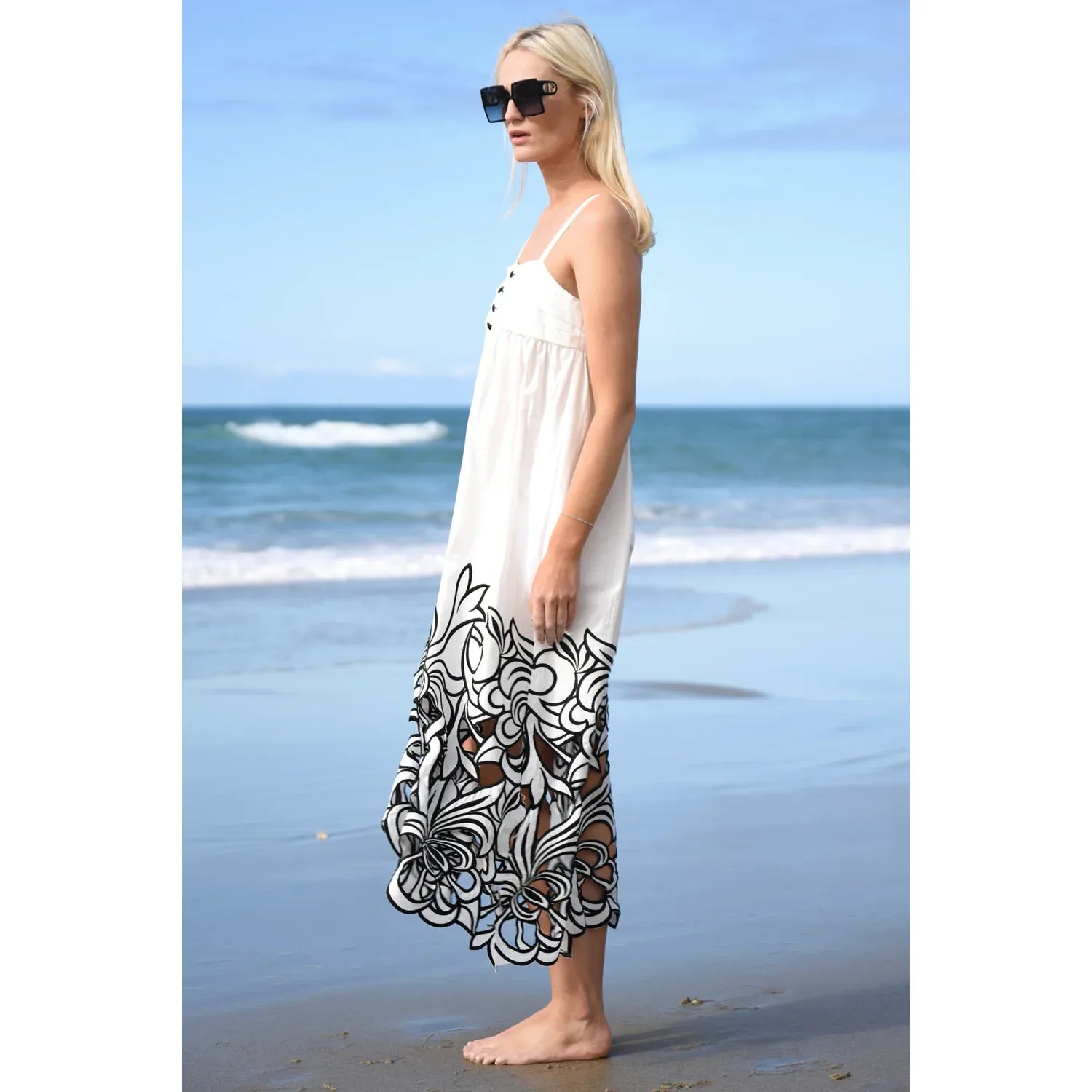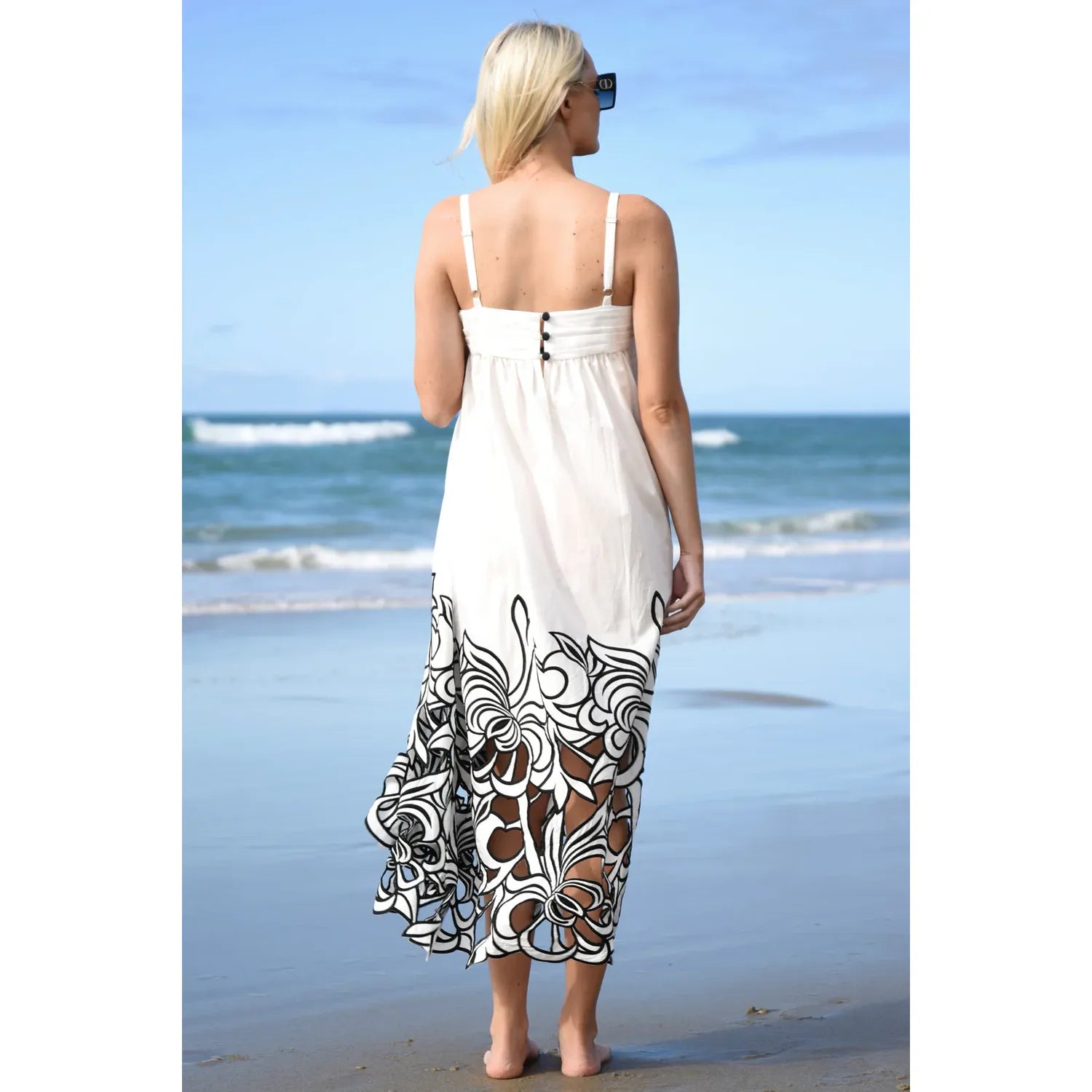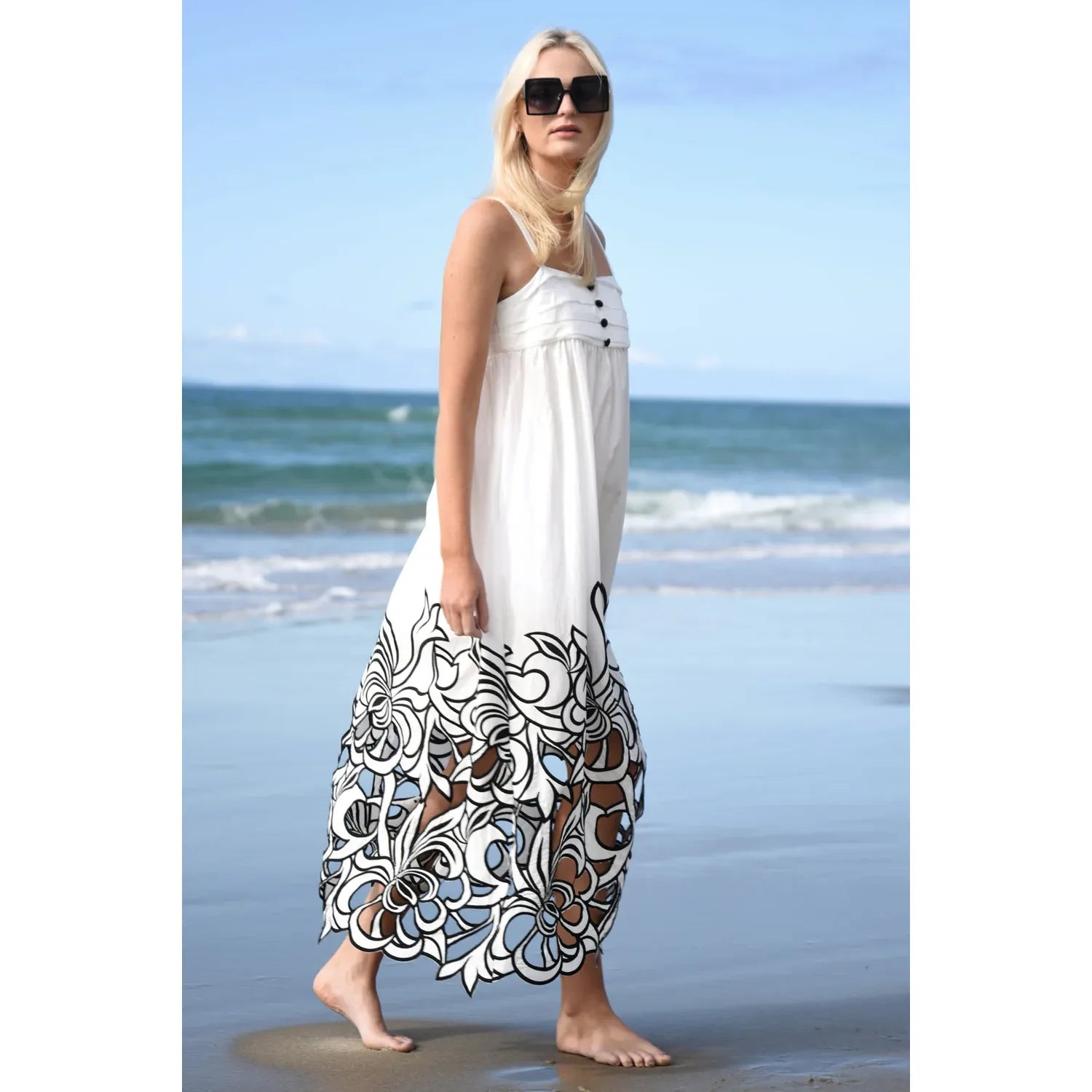 Distinguished by its cutwork floral embroidery, the ‘Tickle my Fancy’ dress will captivate crowds at your next party or event. Meticulously and thoughtfully crafted in the ‘Avant-Garden’ fabrication, this dress is fitted at the bust with delicate pleating, and finished with adjustable straps and side pockets for maximum practicality. From sophisticated soirees to glamourous events, this dress will become a summertime staple.